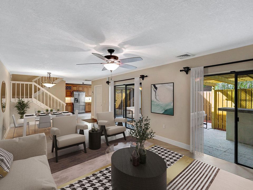 Welcome to your dream townhome in the heart of Palm Beach Gardens! With the largest living area in the community, this 2-bedroom, 2.5-bathroom residence seamlessly combines comfort and style.The chef's kitchen features granite countertops, a custom storage island, and stainless steel appliances, perfect for both cooking and entertaining. Accordion shutters provide security, and a gas fireplace adds warmth and elegance to the living space. Step outside to the newly fenced patio, a private oasis with a built-in BBQ and spacious storage.Equipped with a new AC and gas water heater, the townhome ensures year-round comfort. Downstairs boasts gorgeous porcelain tile flooring, while upstairs features beautiful wood floors. Wake up to serene lake views from the two bedrooms.