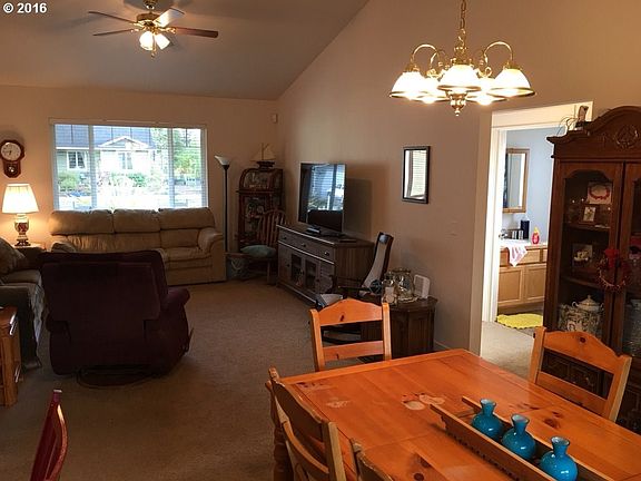 Open floor plan full of natural light! Vaulted ceilings in living room and master. Master & 2 bedrooms on opposite ends. Large walk-in closet in master as well as a double sink vanity in master bathroom. Spacious kitchen with pull out cabinet drawers that provide easy access and increased storage. Finished garage. No step front door for easy access. Wide doors and hallways. Front porch and back patio both fully covered. Low main