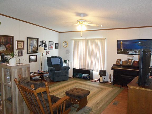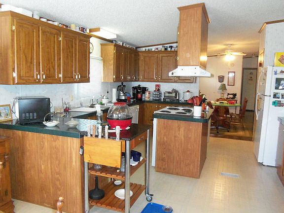 Custom mobile home w/4 feet added, with extra piers in the middle AND around the perimeter, so possible permanent foundation. Well maintained and clean throughout. The neighborhood is quiet and well kept. Good location,convenient to downtown. Detached garage to match 24x24 built w/permanent stairs and bonus area above.