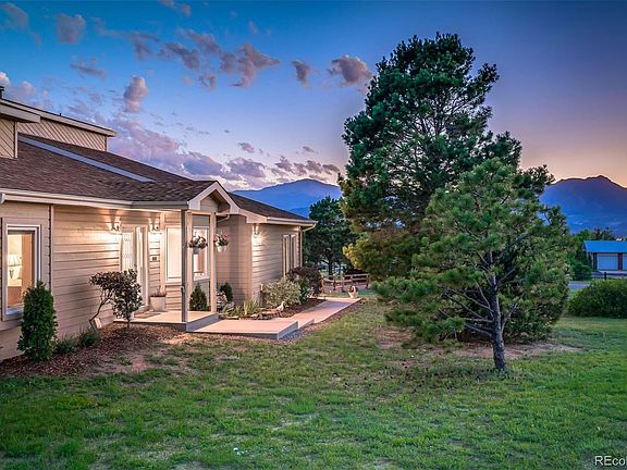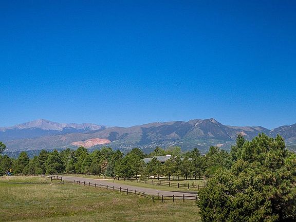 Surprising gem! This D20 home on 2.69 acres in the exceptional Spring Crest neighborhood. Just minutes to everything on the North end of COS. Stunning unobstructed Pikes Peak & front range views. Nestled on a meadow lot across from the Air Force Academy. This rare floor plan has 2 master suites (1 ML), high ceilings & extensive wood detailing. The 2-story tiled Sunroom w/wall of windows creates passive solar. New interior paint on the main level. Tiled air-lock entry w/beveled glass front door. The vaulted 2-story Living Room/Dining Room boasts a lighted ceiling fan & bay window w/excellent views. Main level Master Bedroom w/walk-in closet and 5pc Bath that offers tile floors, a dual sink vanity w/ framed mirror, soaking tub w/granite surround, and separate shower. The Family Room has a ceiling fan and tiled fireplace w/wood mantle. The island Kitchen/Nook features refinished wood floors, counter bar, 2 pantries and Corian counters. Stainless steel appliances include a smooth top range oven, built-in microwave, dishwasher, and French door refrigerator. The bay Nook has a framed Pikes Peak view and walks out to the backyard patio. Powder Bath has a vessel sink. Laundry hook-ups on the main and upper levels. The upper level includes a loft overlooking the Sunroom, laundry closet, 2nd MBR w/attached shower Bath, and 2 more Bedrooms and a full Bath. The upper level Master Bedroom has a walk-in closet and walk out to a private deck w/amazing views. The finished Basement offers a 5th Bedroom w/walk-in closet and adjoining tiled bath, Media/Rec Room w/ceiling fan, track lighting, dry bar, beverage refrigerator, and TV recess. Oversized 3-car garage w/overhead storage shelves & freezer. High efficiency furnace. Partially fenced 2.69 acre horse zoned lot w/lush green grass, beautiful mature Blue Spruce trees, storage shed and playset. Minutes to I-25, Shops at Briargate, Interquest Pkwy restaurants and activities, and the Air Force Academy.