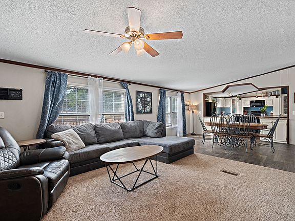 This beautiful and well-maintained farmhouse-style doublewide mobile home offers the perfect blend of comfort and country charm. With 2 spacious living areas, there’s plenty of room to relax or entertain. The large kitchen is designed for gatherings, making it ideal for hosting friends and family. The primary suite is a true retreat, featuring a luxurious soaking tub in the spa-like bath. Set on a fenced property with an electric gated entrance, this home is ready for both people and livestock. With charm, practicality, and modern amenities, this property is move-in ready and waiting for its next owner to enjoy country living at its finest!