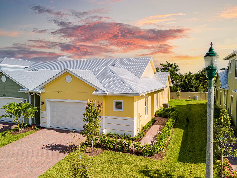 Experience easy living in Bridgepointe, one of Vero Beach's most desirable gated communities. This 2-bedroom + study, 2.5-bath townhome features an open layout with quartz countertops, soft-close cabinetry, impact glass, and an oversized 2-car garage. A stained wood ceiling in the gathering room adds warmth and character. With other units available, there's a fit for every Buyer. Enjoy resort-style amenities including a pool, tennis, fitness center, and clubhouse, all just minutes from beaches, dining, shopping, and the airport. Ask about our preferred lenders ''No Closing Cost'' program! OPEN HOUSE Tue/W/F/Sat 10-5p