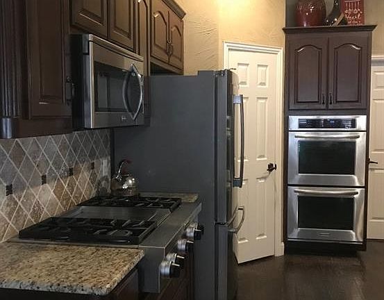 Truly stunning one level 4 bedroom, 2.5 baths waiting for you to make it your new home. Featuring a variety of must haves: hardwood floors, ceramic tile, carpet, granite countertops, tumbled marble backsplash in kitchen, stainless steel appliances, gas cook top, double oven, plantation shutters, walk-in pantry, huge master walk-in closet, eye catching stone patterned wall in master bath, beautifully neutral painted walls, large crown molding, tray ceilings, timeless fixtures and a sparkling pool! House sits between mature trees in a quiet neighborhood close to 287 in Mansfield ISD. This one wont last long!