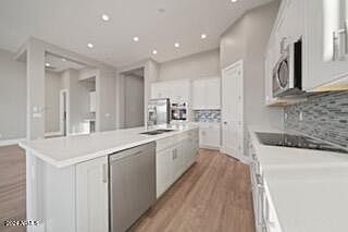This beautiful modern new build is a must see. Home sits on over a 1/2 acre of land, no HOA. Situated in Wickenburg's Hermosa Ranch neighborhood, close to Safeway, Post office,and restaurants. Close to the quaint downtown Wickenburg. Outside you'll find front yard is landscaped. Exquisite lights border under the eaves of the home. This split bedroom floor-plan is full of upgrades including Quartz countertops in kitchen, soft close white cabinetry, walk-in pantry, wood laminate throughout and tile in bathrooms. The master suite is very big, with a spacious walk-in closet & ensuite is stunning w/ a double vanity, enormous walk in shower with two shower heads and stand alone tub.The home comes with a 2-year builder warranty.