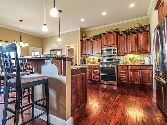 Step in this ranch-style home into the open living room highlighted by a beautiful gas fireplace and dark hardwood floors. Entertain guests easily in this kitchen with a huge granite covered island. Under cabinet lighting completes the look along with stainless steel appliances & amazing walk-in pantry. Step into the master suite & fall in love w/ the bathroom; double vanities plus a sit-down make-up counter area, walk-in tile shower w/ two shower-heads, & a private toilet closet. The lower level hosts HUGE family room, two additional bedrooms and baths, and lots of space for storage. Enjoy the summer evenings on the covered deck overlooking large fenced in yard.