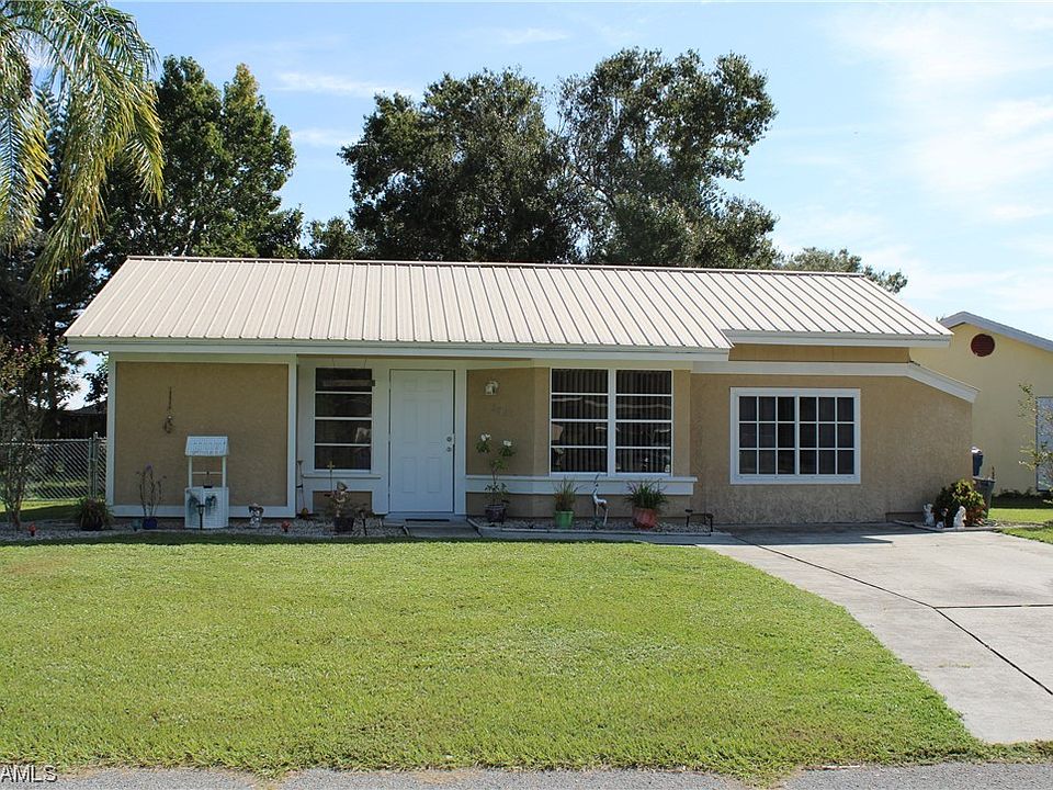 PRICE ADJUSTMENT! Cute and cozy 2 bedroom, 1 bath ranch style single family home located in the Country Village area of Port Labelle. The home underwent renovations in 2006. The metal roof was replaced in 2018. Fenced backyard with large trees and an array of plants. There are 2 spacious exterior storage units on the right side of the house. Large screened lanai for entertaining or just enjoying the peace and quiet. Close to schools, shopping, restaurants, and the Caloosahatchee River. This cute home will come with a 1 year home warranty.