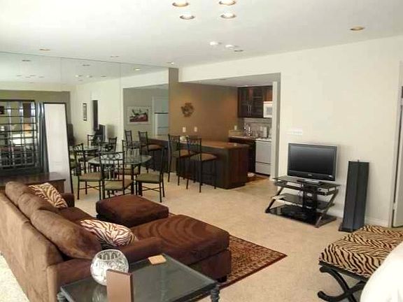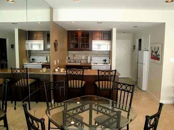 Arguably Best Location in the Chateaus. Sought After-SOUTH Facing-Penthouse-East Corner Condo! Open Studio, Granite topped Breakfast Bar, Updated in 2009, Tile floors in Tile Kit. & Both Baths. SEE Supplement. Master Bath Counter has Granite Countertop, Tile Tub Surround and Tile Wainscot Walls.. Vertical Blinds on 2 sets of Slider Doors to Full Length Balcony. Needs Carpet, Paint, 1 Fogged Glass Panel & Minor repairs. Location Values Stay! Remodel Values Chang