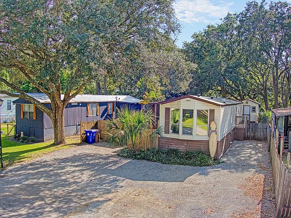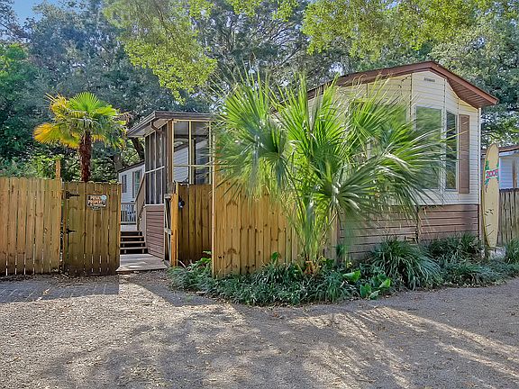 What a great find less than 2 miles to Folly Beach in Loved Riverfront!! Less than a block from the marsh with the smell of salt in the air! Open concept living with two nice sized bedrooms each at opposite ends with full baths. No carpet, roof installed 2020, and new HVAC in 2022! Fantastic privately fenced outdoor living space shaded by grand oaks and palm trees, enhanced by a screened porch, an oversized deck which flows to the perfect area for a firepit, and the coolest outdoor shower! Completely detached ADU, not included in listed sf, with a large room and full bath, cooled by a new AC unit that could be rented, used as a home office, or guest suite. If you need a she/man workshop with electricity this property has that covered too! Then we have a third storage structureto house your surf boards and beach toys with still room to park your cars and boat! Included on the right side of the home there is a 30 amp and sewer RV parking space! This property would be the perfect primary or secondary residence, or rent the entire place. No HOA! The choice is yours!!