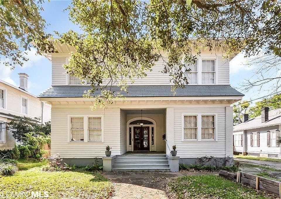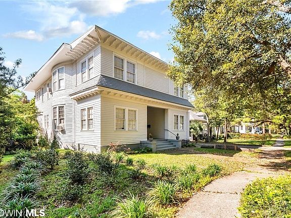 Great opportunity to have tenants help pay your mortgage! Or perfect for Airbnb or traveling nurse options. Lovely old circa 1919 Midtown Historic District home has the potential to have at least 6 bedrooms, 4 full bathrooms if returned back to single family. There are a total of 4 apartments and all are currently rented on a month to month basis. Great location near Publix, Taco Mama (0.9 miles), Nixon's and The Dew Drop (0.7 miles), and Soul Caffeine coffeehouse (0.6 miles). 2.6 miles to Bel Air Mall and 2.2 miles to Downtown Mobile. Sellers have replaced roof in 2022, rewired completely apartment 4, painted the exterior in 2021, Back stairs and dormer in 2023, fresh wall paint in all apartments, foundation work was done by Williams Foundation in 2021, as well as visqueen thick moisture barrier on the ground under the house, and also tore down a poorly-built back building. Hard to get repair termite bond with Havard can be transferred! Apartments feature 3 new fridges and 4 new stoves. Originally, this home was built for the treasurer of the Whitney-Bodden Shipping Company. Interior staircase is still intact and it once over-looked 3 large entertaining rooms with Arts and Crafts style mantles. There are 7 fireplace mantels throughout. It appears the front porches were enclosed in the 1940s as well as the kitchens probably originally were back porches that were all enclosed. Quiet tenants are month to month leases; they pay their own power and gas. Luxury vinyl plank flooring was put down in the kitchens and 1 bathroom. The other 3 bathrooms feature original white octagonal tile. Beautiful hardwoods throughout elsewhere. First floor (2,300 square feet) : Apartment 1 is the largest and will rent for $850 a month. It features 2 bedrooms and a washer/dryer. When the house was made into apartments in the 1940s, the owner lived in this one. Apartment 2 has 1 bedroom, a curved built in original seating area and wide plaster crown molding all still intact; it rents for $7