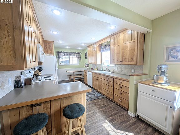 Bright, clean and move in ready is what describes this 3 bedroom, 2 bathroom home in La Grande, OR! On the main floor, this home features an open dining room and kitchen with upgraded cabinetry and plenty of space. The master bedroom and en suite is private with tall ceilings, an oversized room and has a mini split for comfort of heating and cooling. With a wide staircase and gentle slope, the basement is easy to access for laundry, pantry storage a bonus room and a second living room or large bonus room (no egress in the basement). Situated on an over 10,000 Sq. Ft. lot, this property comes with an irrigation well, parking, detached garage and a shop space off the back of the garage. The Hot Springs hot tub can be included with an acceptable offer to the seller. This home and property can be loaned on with all buyer loan types, get your viewing in! Sq. Ft. is an estimate and should be verified by buyer through due diligence.