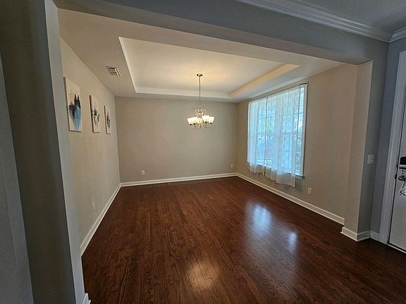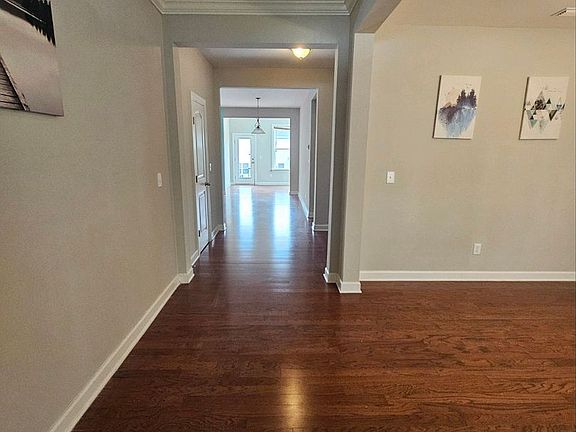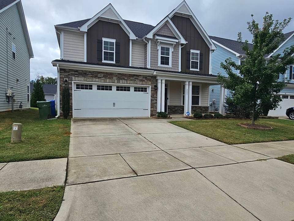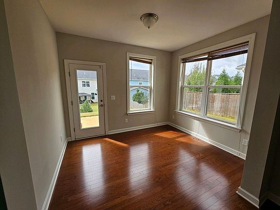 Covered front porch! This home opens to a spacious foyer with hardwoods throughout the first floor. Formal Dining area, gourmet kitchen granite countertops plenty of cabinets and counter space. Gas cooktop stove, built-in oven, and microwave. Large walk-in pantry. First-floor guest suite with full bath Second-floor primary suite with luxurious bath including walk-in shower tile surround and glass enclosure and garden tub. His and hers walk-in closet. Large bonus room for office or playroom. Four-bedroom home ready for immediate move in Short distance to wake tech.