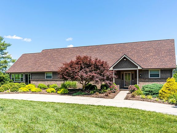Pristine brick ranch in highly desired location within a few minutes drive to interstate, Winchester, or Lexington. This custom built home is on a finished walk-out basement with oversized attached two car garage stetting on large 4.8 acre lot. Extensive landscaping and large deck with stunning views. This property also features an executive level of finish with traditional hardwood flooring throughout. Elegant formal living room, separate formal dining room, three seasons room with hot tub, and open concept floor plan from family room to kitchen. The kitchen has been upgraded with solid surface granite countertops, large island, custom made solid cherry cabinets, under cabinet lighting, and high end luxury stainless appliances including a wine/beverage cooler. Primary bedroom features spacious walk in closet and large ensuite with double bowl vanities, jacuzzi tub, and dual head steam shower. Property has multiple entrances for front and back with ample room for parking, plus an additional detached three car garage with carport. Attic space is floored makes for great space for additional storage and could easily be converted to finished space. Call to schedule private showing!