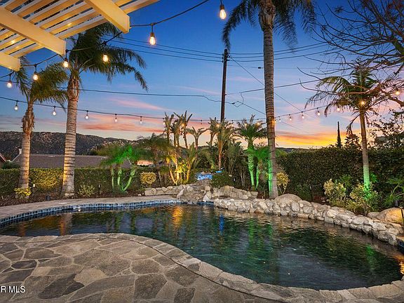 Welcome home to this contemporary 5 bedroom, 3 bath pool home with an amazing backyard, on a cul-de-sac with view of the mountains and fully paid solar! Wow! The large front porch with double doors lead to the living room with a granite fireplace that opens to the formal dining room with French doors to the patio. The updated kitchen has stainless appliances, granite counters, custom cabinets, and a breakfast bar. Tucked between the kitchen and family room is a great little nook perfect for a wine or coffee bar. Both the open, large family room and atrium have lots of design possibilities. French doors showcase the tropical paradise backyard that defines outdoor living-perfect for entertaining, family fun or just chillaxing. Enjoy the black bottom pebble tec pool with a waterfall or the in-ground spa. Entertain on the large covered patio, grill on the built-in BBQ, enjoy the colorful LED lighting and river rock design throughout the yard. It's the perfect place for a stay-cay! The added bedroom downstairs has it's own entrance and a full bath great for in-laws or a home office. Upstairs are three bedrooms with an updated full bath. The primary suite has French doors to a balcony with the best view of the mountains, a dual sided walk-in closet, step-in shower and large jetted spa tub. The added laundry room has a handy utility sink and leads to the garage with work bench and built-in storage cabinets. Bonus is the fully paid SunRun solar installed in 2018, a tankless water heater and soft water system. Other upgrades include new pool/spa equipment, newer roof, sewer line replaced in 2017, recessed lighting, outdoor automated LED lighting and the list goes on. All this and location too - two blocks from White Oak elementary school, minutes from parks, shopping, restaurants and commuter access to freeways. Don't miss this one!