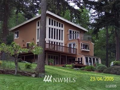 Rich wood interior with exposed beams. Lots of windows to let in light. Gorgeous maple wood floors in lower level leading to enclosed hot tub room. Upper and lower decks for entertaining. Beautiful surroundings, owners are master gardeners - raised garden beds, greenhouse, fruit trees. Glass block and tile bathrooms. Detached garage/shop/outbuildings. Located in ideal spot for privacy and easy access to Freeland shops and services.