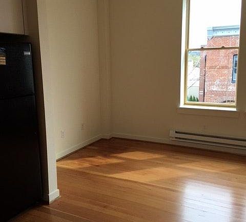Newly remodeled apartment in historic building is the perfect blend of old and modern living. Studio lives large at 411 square feet, 12' ceilings and tall windows with fir flooring. Owner pays for water, garbage. All tenants must screen and have a minimum 650 credit score