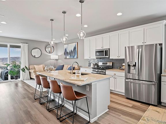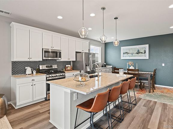 Welcome to this beautiful, move-in ready home that has all the modern amenities you could want! This 3 bedroom, 2 bathroom house offers over 1500 sq ft of living space, one of kind backsplash, custom fireplace tile and was built in 2021. The open concept design combined with contemporary finishes makes it a great place to entertain friends and family. The kitchen boasts granite countertops, stainless steel appliances, and a gas stove - perfect for cooking up delicious meals. Step out onto the covered patio overlooking your fenced backyard where you can enjoy summer barbeques or relax after a long day. This home is conveniently located near I-25 for easy access to nearby shopping centers or downtown areas. Don't miss out on this opportunity to own your dream home; call today for more information!