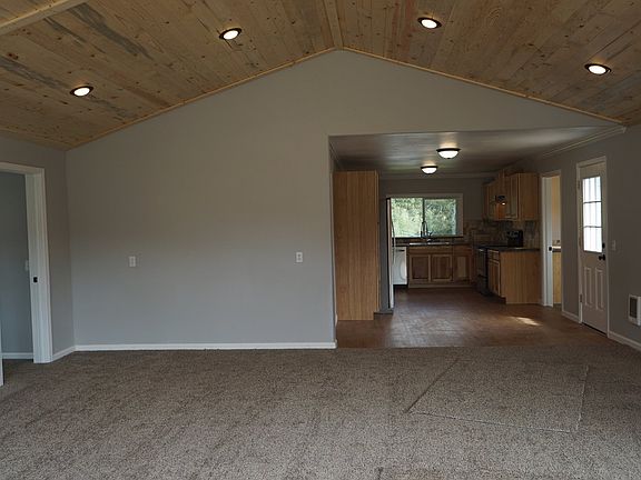 Hidden Treasure! This nicely remodeled in 2018 one-level home sits at the back of a deep lot behind a triple car garage. Remodel in 2018 included the garage/new cement board siding/kitchen/bathroom with double vanity and privacy door/flooring/paint/fixtures, doors and vaulted living room ceiling with blue pine! Home has metal roof and newer windows. Both garage doors with automatic openers. Photos from 2018.
