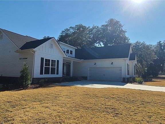 UPGRADES JUST ADDED! Brick skirting has been installed around the bottom of the home along with a brick paved front porch. Larger ceiling fan upgrades, kitchen hardware upgrades, along with wood shelves in the closets. This new construction in beautiful Sutherland Bluff Plantation nestled between large moss covered Oak trees and it just keeps getting better. This 2,003 heated sq ft home features 3 bedrooms and 2 1/2 baths and a large open living area with top of the line kitchen appliances. The main rooms have 10' ceilings with 8' doors. The master bath features dual vanities, a separate shower and walk in closet that joins a back entry to the laundry room. Walk through the extra tall double glass doors to enjoy your morning coffee on the large 12' x 30' screened in back porch and watch the wildlife while overlooking hole 13 of the Sapelo Hammock Golf Course. An irrigation system has been installed throughout the yard along with landscaping and sod. Golf cart distance to community dock, tennis courts, pool, fitness center and local restaurants. Appliances remain and furnishings negotiable.