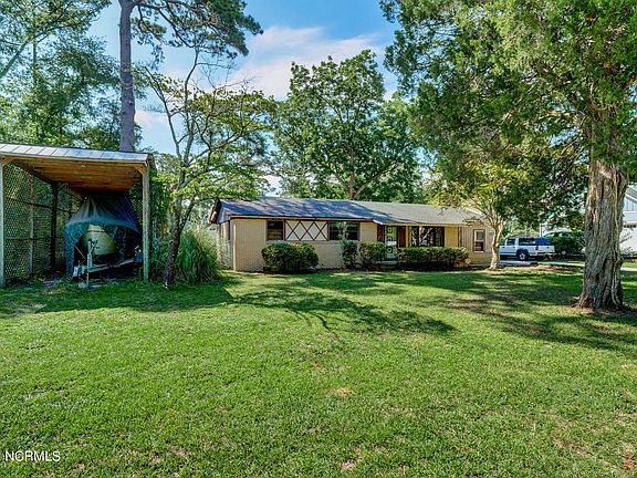 Waiting for you is your nautical coastal cabin nestled within walking distance to your deeded water access behind Mason's Inlet. Hand built by a boat builder in 1963, this Middle Sound brick ranch home boasts all the craftmanship of his creation and imagination. Approximately 90% of the wood for the home was procured and milled locally at the Burrow's Sawmill, close to what is now Ogden Elementary School. With over 1400 square feet of single level living, this creates the quaintest feel with the hand-crafted wood burning fireplace complete with a Black Bart forced air wood burning stove. The walls in the den are 3/8'' beadboard and the ceiling is 3/8'' maple trimmed in yellow pine. Artisanship like this is so hard to find and recreate in today's market. The nautical coastal cabin feel carries through into the kitchen where you will find natural finish pine tongue and groove cabinets; all appliances will convey. The floors throughout the main living areas of the home are composite for easy cleaning and maintenance. Chair rail molding, craftmanship and attention to detail are visible throughout the entire home. There are 3 bedrooms and 1 1/2baths. Within the home, the original living room has been a recording studio for many years but will yield easily for additional living space. As you make your way to the back deck and fenced backyard, not only are there two boat sheds, but there is an ample 12x24 workshop and an 8x10 toolshed. All of this is within walking distance to the boat launch capable of handling up to an 18-foot skiff along with kayaks, paddle boards, surfboards and other light watercraft. Wade fishing or fly fishing is at your back door! Do not miss the opportunity to feel the ocean breezes, smell the salt water and be safe and flood free at approximately 25 feet above sea level. (No flood insurance is currently held on this home; elevation certificate is the responsibility of the buyer.) When you return home after a long day of play, use the outside hot water access to hose off. Finish your day on the back deck overlooking the large corner lot with mature landscaping that has recently been updated. If this nautical coastal cabin draws you to coastal living, please make an appointment for a private showing.