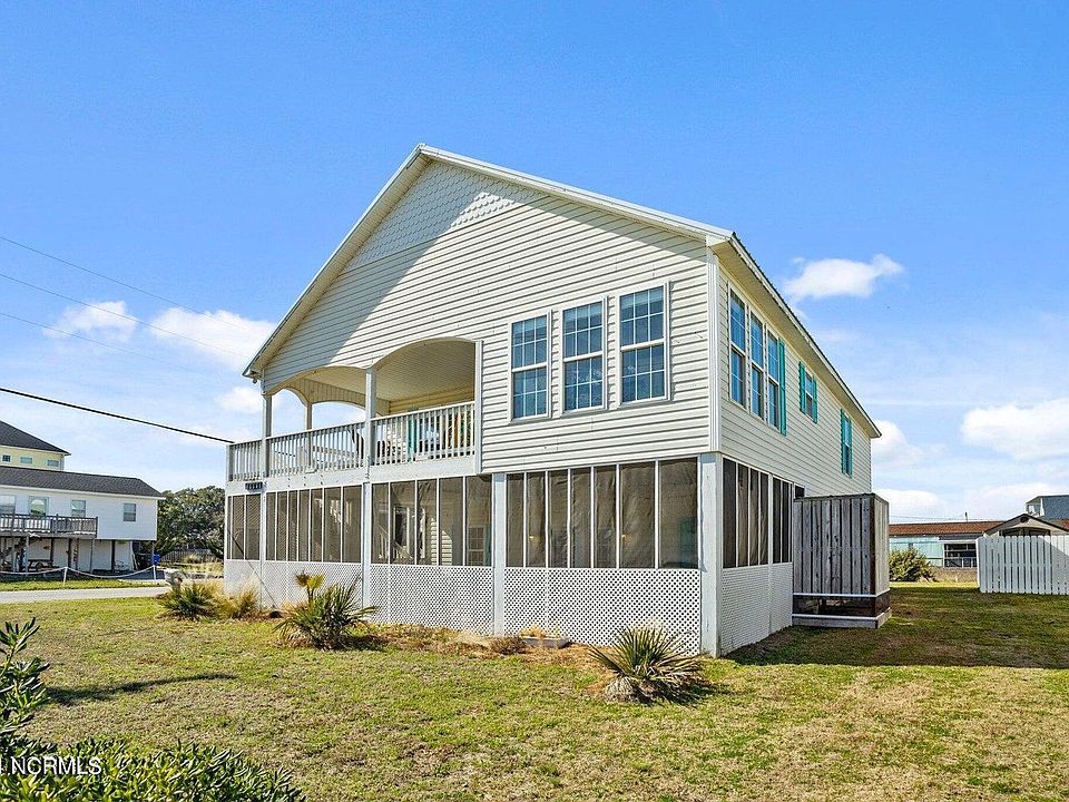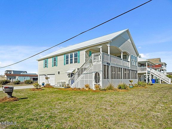 Charming Beach Cottage steps away from the beach access. This home has been enjoyed as a second home but would make a great rental investment. Enjoy ocean sunrises and breezes form the spacious covered porch or take a short stroll to local gathering spots for dining, nightlife, and island activities. 3bd/2ba, bright and beautiful kitchen that opens to a cheery dining area and spacious living room with vaulted ceilings. This coastal home is full of natural light with amazing Atlantic sunrises and coastal moonrises over the ocean. Enjoy the breezes and sounds of the ocean from the covered porch on the upper level or entertaining and cookouts on the lower level with a large screened porch that opens to a finished flex room for additional guests quarters. There is also a two car garage for parking and storage. Upgrades include a metal roof, granite kitchen, stainless appliances and HVAC! No HOA fees. Great opportunity to own a piece of this beautiful 26 mile barrier island on the NC Coast!