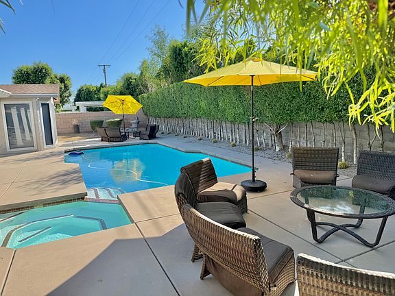 Located north of the Palm Springs International Airport, this three-bedroom two-bath house has convenient access to all that Palm Springs has to offer.