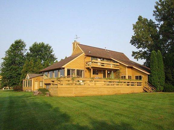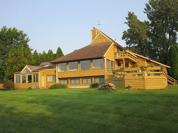 Wonderful custom contemporary home w/a flexible floor plan that boasts privacy throughout. Living room & dining area provide that great room feel w/vaulted ceilings & picture windows that reveal fantastic views of nature & the lake, together w/fireplace & hardwood floors. Step out to the multi-level cedar deck that extends those views & allows for entertaining & relaxation--including many access points from within the home. Large kitchen w/cherry cupboards & an add'l eating area & deck access. Relax in the lower level family room or take time in the recreation room w/skylights & outdoor access. Two bedrooms on the main level w/baths & a laundry area. Master suite w/vaulted ceilings, a private deck w/the most relaxing feel & views that rival the best, closets, & private bath with garden tub, shower, & his-&-her vanity areas. Office just off of tiled entry (w/radiant floor heat) & finished basement w/bedroom area & add'l family room/rec area. Much much more to see!!