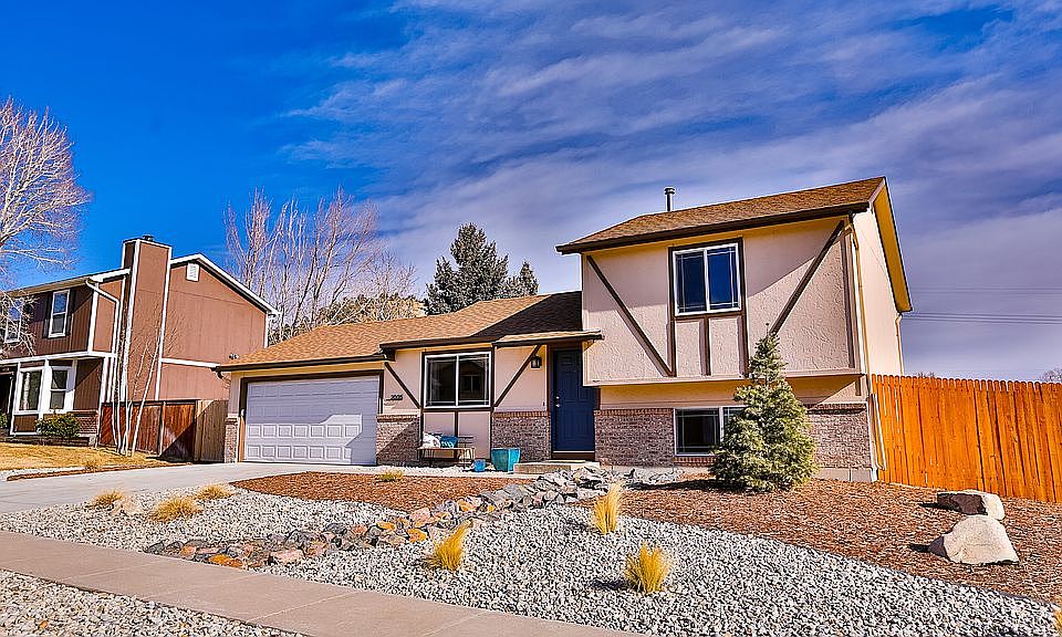 ADORABLE 3 BEDROOM HOUSE BY UCCS IN UNIVERSITY PARK & EASY ACCESS TO I-25 Tri-level 3 Bedroom, 2 Bath on a huge flat lot. Ideal location in Colorado Springs: close to CSSU, 2.5 miles to University Village shops and restaurants, 3.5 miles to Interstate 25 & Garden of the Gods, adjacent to Palmer Park. Low-maintenance Xeriscaped front yard. Insulated, dry-walled, and heated oversize 2-car garage. Kitchen has bright white shaker cabinets, black granite counters and hardware. Updated bathrooms. Walk-in closets in both upstairs bedrooms! Large Master bedroom with a beautiful rock formation view. Updated gas fireplace in the cozy family room den with office/crafting nook. Mech/laundry room with washer and dryer included. Huge fully fenced in backyard with shed. Central AC. Dogs negotiable. AVAILABLE 2/6/23