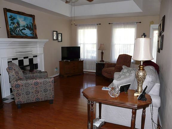 4 side brick home w/great layout on level lot.Covered front porch.Open living rm offering fireplace w/gas logs, trey ceiling and open to dining & Kitchen.Master bedrm separate from other bedrooms.Master affords trey ceiling, ceiling fan & full bath with walk-in closet.Master bath has double sink vanity, separate step in shower & garden tub.Down hallway off of living room are 2 bedrooms & 1 full bath.Permanent stairs leads to unfinished storage above garage.Deck overlooks level fence in backyard.