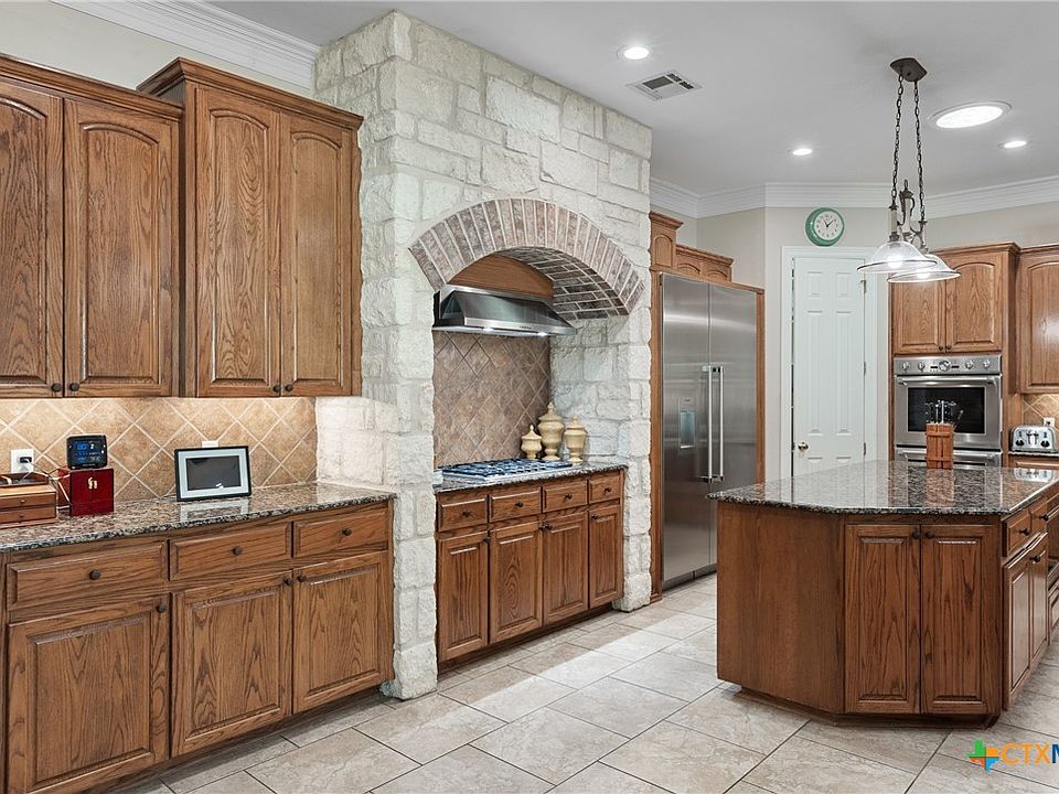 Discover unparalleled luxury in this exquisite custom residence, where refined elegance meets thoughtful design throughout an impressive 3,585 square feet of living space. This pristine, one-owner masterpiece boasts soaring ceilings and a versatile floorplan featuring formal and informal dining areas, a sophisticated living room, and a welcoming den with gas fireplace logs. The chef's kitchen stands as a culinary sanctuary, appointed with custom cabinetry, gleaming granite countertops, and a generous breakfast bar accommodating six guests. Commercial-grade Thermador appliances—including side-by-side refrigeration, convection double ovens with rotisserie capabilities, and a professional gas cooktop—will satisfy even the most discerning culinary enthusiast. Five beautifully appointed bedrooms provide ample space for family and guests, while three full baths offer convenience and privacy. The primary bedroom serves as a tranquil retreat from the day's demands. Thoughtful upgrades abound, from hand-scraped engineered wood and tile flooring to custom blinds and plantation shutters. Recent improvements include three replaced HVAC systems, dual tankless water heaters, and a newly installed Class 4 GAF Timberline roof. Step outside to discover your private paradise—a sanctuary backyard featuring a custom-built pool with dual waterfalls and hot tub. The covered entertainment area with wood-burning fireplace provides the perfect setting for al fresco gatherings among the mature trees and flowering gardens. Additional amenities include an oversized three-car garage plus detached workshop, climate-controlled attic storage, and even a Texas Tech-designed tornado shelter. Conveniently located near Belton High School and Chisholm Trail Park, this remarkable property awaits your discerning inspection. Make your appointment today!