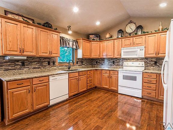 Spectacular Home With All The Bells & Whistles, Located On A Quiet Cul-De-Sac In Desirable West Side Sioux Falls. The entrance greets you w/a large foyer & high-quality laminate wood flooring that extends throughout the MF. The kitchen boasts a vast amount of granite countertops & cabinets, along w/tile backsplash, new hardware & top-quality appliances. The dining area has a sliding door w/access to an enormous 10x22 deck w/stairs to a HUGE patio. The living rm is set to impress, w/vaulted ceilings & plenty of space. Highly-desired 3 bedrms on the MF, all w/double closets. The MF master bedrm includes a pass-through master bath w/granite countertop & new sink & faucets. The lower level displays another bed & full bath, a gigantic family rm w/a beautiful gas FP, an abundance of storage, along w/several new amenities, including carpet, water heater & additional interior drain tile w/battery back-up. This is a high-value home w/benefits galore, including a shed & privacy fenced-in backyrd
