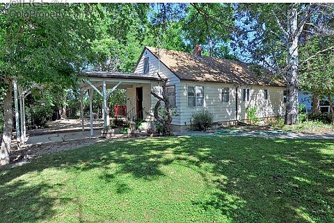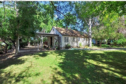 Unique and full of character, charming farm house! WITH .66 shares of Southside water! (Some of the best irrigation water) Some updating & additions done including siding & master bedroom/bathroom. Enjoy country living but literally moments from downtown Loveland. The walk out basement used to be the garage but is now fully enclosed. 2 outbuildings one of which can house an RV and has power. Lots of history including the possibility that it has the largest Aspen tree in Loveland. Sold AS-IS