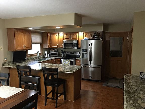New listing: approximately 2100 sq ft total. Nice, neat and spacious home in town with 3 bedrooms and 2 full baths! Main level features: a large living area and/or office with laminate wood flooring; remodeled kitchen with all new stainless appliances (will remain with house), granite countertops and oak cabinetry; kitchen/dinning room includes a breakfast and buffet bar as well as patio doors to the deck; laundry hookups available in kitchen pantry closet as well as the laundry area in the basement. Second level features: 2 guest rooms; a newly remodeled guest bathroom which includes a bathtub/shower, maple vanity and granite countertop; master suite with 3 closets, a newly remodeled master bathroom which includes glass shower, cherry vanity and granite countertop. Lower level features: large family room with a storage closet; children's play area; newly remodeled laundry/storage room. Additional features: attached 2 car garage; large deck; large storage shed; beautiful landscaping which includes children's play set. Wooden blinds in living room will be staying as well as all other blinds throughout the house. If interested, please contact me at 217.821.1742