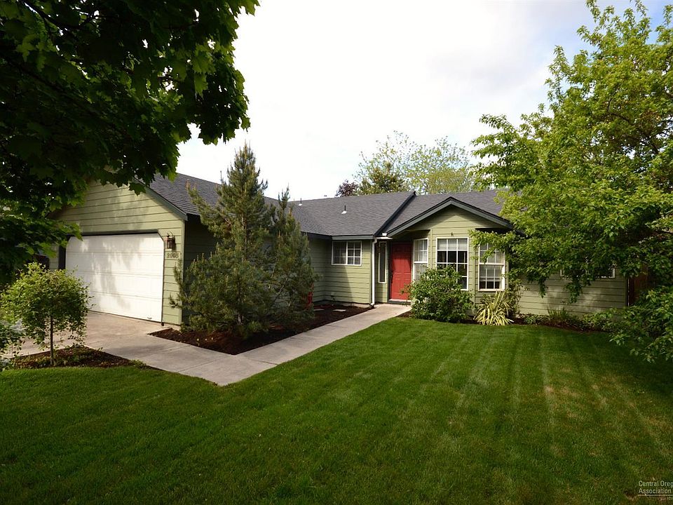 Perfect single story home in SW Redmond. Nicely updated with laminate wood flooring, spacious kitchen, updated master bath and light fixtures! This home sits back from the street in a garden oasis with mature trees, covered back patio and spacious fenced back yard. Appliances and brand new washer & dryer are included. With new roof and recent sprucing this home is move in ready. Imagine relaxing in your new manicured backyard while enjoying the Central Oregon sunshine! Call for showing appointment today.