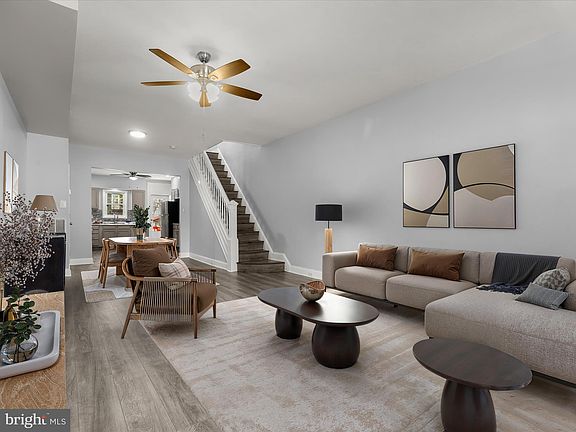 Welcome to the Clifton Park community of Baltimore City! This beautifully renovated rowhome offers modern comfort and historic charm just moments from Clifton Park and downtown Baltimore. A spacious front porch invites you inside to an open-concept main level featuring a neutral color palette, transom and stained-glass accents, and luxury laminate flooring that flows seamlessly throughout. The living and dining areas open to a stylish kitchen complete with sleek appliances, a decorative backsplash, ample cabinetry, luxury vinyl plank flooring, and walk-out access to the rear deck, storage shed, and fenced yard. Upstairs, retreat to the light-filled primary bedroom with soaring ceilings and gleaming hardwood floors. Two additional bedrooms, including one with a skylight, and a renovated hall bath complete the upper level. The fully finished lower level expands the living space with ceramic tile flooring, a powder room, laundry, and the flexibility for an office, recreation room, or guest bedroom. Perfectly located near major commuter routes, including US-40, I-83, and I-95, this home offers both convenience and comfort for city living at its best!