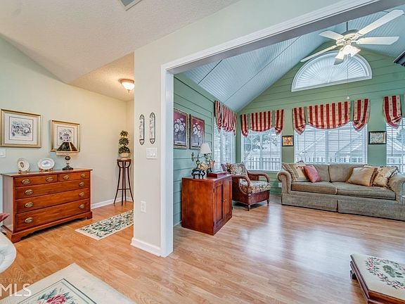 Hard to find and rarely available active adult ranch condo in the heart of Crabapple. The Orchards of Sweet Apple is a quiet and well maintained community of all ranch single-story homes. This home is the larger Canterbury floor plan featuring hardwood type floors throughout main living areas, 3 bedrooms, 2 full bathrooms, veranda / sunroom, bright and open living room, dining room, spacious kitchen with 2 pantries, vaulted owners suite / double vanity / walk in closet, 2 car garage and more. The 3rd bedroom is currently a den with French Doors. Monthly HOA of $290 includes yard maintenance, exterior home maintenance, roof, water, clubhouse with social room, kitchen, computer center, card room, library and fitness center. Amazing location close to great restaurants, shopping, downtown Alpharetta, Roswell and Crabapple. Minutes to North Fulton Hospital. Within walking distance to neighborhood conveniences like Publix, Ace Hardware, Starbucks, Crabapple Tavern and more.