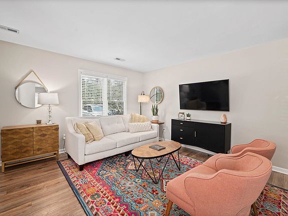 *Offer accepted. DD received.* Pair the ideal North Raleigh location with a move-in ready home, and you’ve found your hidden gem. This 2 bedroom, 2 1/2 bathroom end-unit townhome sits just minutes from desirable North Hills, with neighborhood amenities and more. Enjoy the first floor’s open concept living room and dining area with a half bathroom centrally located, perfect for entertaining. The modern kitchen and laundry room boasts ample cabinet space, creating useful storage options. Hosting company? Guests will enjoy their privacy in the secondary bedroom with an ensuite full bathroom and beautiful natural light. The second floor features the spacious primary bedroom and bathroom, which was recently renovated to complete the home’s modern aesthetic. The storage options continue with walk-in attic space in the primary bedroom and hallway. End your busy days relaxing on the private patio, fully fenced and perfect for those warm summer nights ahead. Upgrades include a new roof (2023), primary bathroom renovation, updated carpet, and laundry room cabinetry. It’s North Raleigh living made easy - welcome home!