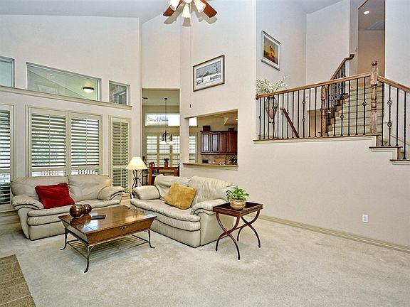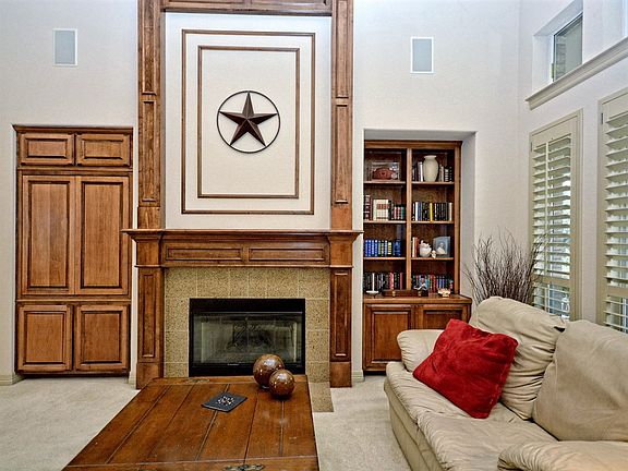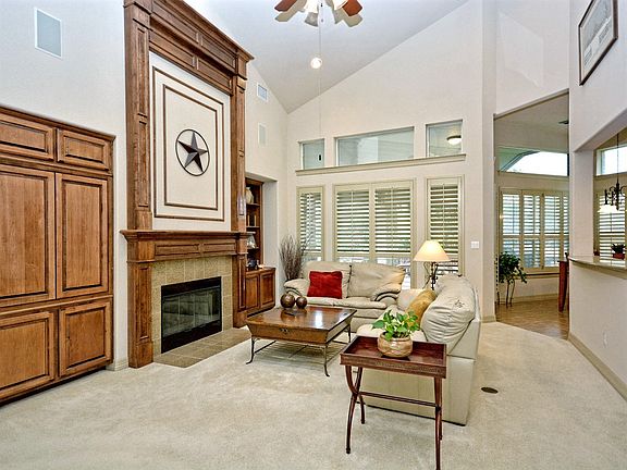 Beautiful original owner home. Natural color tones engineered wood and tile flooring. Gourmet style kitchen with 42” cabinets, under counter lighting, granite counters with stone kitchen backsplash and Stainless Steel Appliances. Master and one additional bedroom down. Large media room including wet bar and surround sound. Raised ceilings with crown molding. Windows include Plantation Shutters throughout. Exterior is brick with Texas stone accent, expanded covered patio and cedar deck facing greenbelt.
