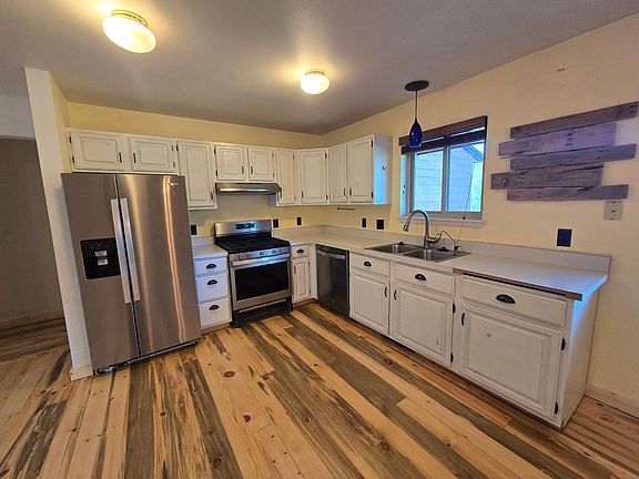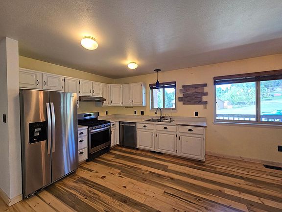 This beautifully updated Woodland Park home offers the perfect mix of comfort and character. Step inside to find gorgeous natural wood flooring and accents, a cozy wood-burning fireplace, and a bright dining/kitchen combo with white cabinets and plenty of counter space. The spacious primary suite features a walk-in closet and a stunning tiled shower, with two more bedrooms and a full bath completing the 1,432 sqft layout. Enjoy outdoor living on the large wood deckperfect for grillingor sip morning coffee on the covered front porch. The huge fenced yard is ideal for pets, play, or gardening. This home also offers 220 volt electric vehicle charging in the garage and solar panels to off-set your monthly electric bill. All this in an amazing location close to parks, hiking, biking, schools, and everything Woodland Park has to offer.