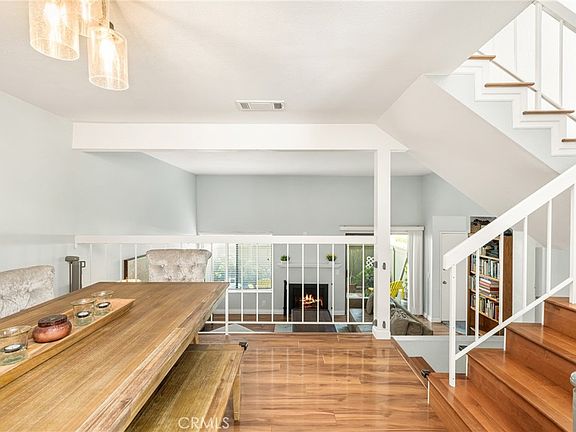 Discover this beautifully upgraded 2-bedroom, 1.5-bathroom home, featuring an inviting open floor plan that seamlessly connects the living and dining areas that boasts beautiful wood floors. Enjoy cozy evenings by the fireplace in the living room or host gatherings in the formal dining room. The upgraded kitchen boasts marble flooring, a stylish backsplash, quartzite countertops, and a garden window, creating a bright and elegant space for cooking. Step outside to your private patio, perfect for relaxation or entertaining. Convenience is key with inside laundry and a 2-car garage. Stay comfortable year-round with central air conditioning. This home offers a fantastic blend of privacy and community living. Centrally located near schools, major freeways, shopping, dining, and more, this home is a must-see!
