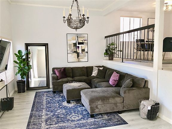 This multi-level END UNIT features 3 bedrooms and 2.5 bathrooms and shares only one common wall. The spacious living room has tall ceilings as well as laminate flooring installed within the last two years. A private patio is located right off the living room. Laminate flooring continues up the stairs to a separate dining room perfect for entertaining. Also located on this floor are the half bath, laundry space and kitchen with quartz countertops. Continuing up the stairs, you will find 3 spacious bedrooms with laminate flooring and ceiling fans in every room and another full bath. The second full bath is located in the master bedroom. A garage with additional storage space is located just a few steps away below the unit. The community provides a pool. This condo is the only 3 bedroom currently available in the community and is located central to the 5, 57, 55 and 22 freeways and near Old Towne Orange, shopping and eateries.