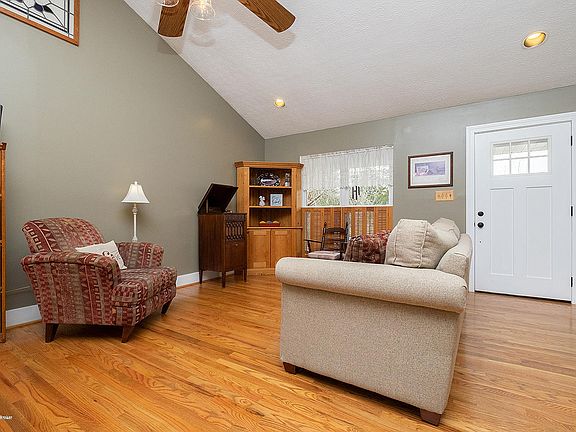 Oldham County 3 bedroom 2 bath ranch with finished basement and 6 car garage on over an acre. Beautiful vaulted great room with hardwood flooring that is open to the dining area. Eat in kitchen with beautiful cabinets, countertops, breakfast bar and stainless steel appliances. Master Bedroom with gorgeous new Master bathroom complete with huge marble shower. 2 additional generous size bedrooms with another full bath on this level. The basement is complete with high end finishes and has an additional family room and another bonus area that would be a great office area. Nice size laundry room and 2 car attached garage in the lower level as well. Fabulous entertaining area on the large deck overlooking your 1 acre lot. Additionally, there is an enormous detached garage large enough to fit another 4 cars plus a lean-to for all your lawn equipment.