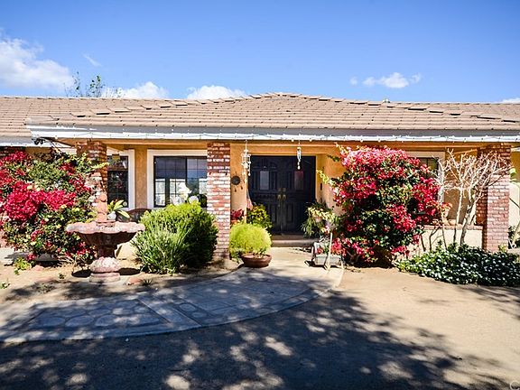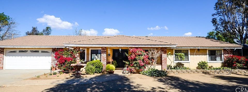 This 2+ acre property is the gem at the end of a private rural road in Lake Mathews. The extended driveway is decorated with fuchsia bougainvillea flowers as you enter through the wrought iron automated gate. The one-story home has a bright exterior & allows for plenty of parking, including space for multiple RVs and toys. Views are abundant from all corners of the property. An open layout allows for the owner's entertaining dreams to manifest upon entry. The kitchen, dining area, living and family rooms are all visible from the front door with subtle enclosures to distinguish each space. A beautiful brick fireplace adds warmth and contrast to the bright, spacious floor plan and serves as a characteristic focal point for the home. The kitchen is updated with dark cabinets and stainless steel appliances. Three ample-sized bedrooms are located near the generously-sized bathroom. The master suite is palatial and bright. Natural light beams through a wide window, enticing the homeowner to enjoy the incredible expanse of land that is the backyard. A door leads from the master to the vast, flat acreage. A 2-bedroom guest home is private, w/ separate fencing & parking. It sits adjacent to a fully functioning workshop with plumbing and electricity. This home offers tons of privacy, including steps to walk down to the second residence, In addition there is a huge flat pad ready for stalls, corrals,or wherever your imagination can take you. Don't forget the miles and miles of trails.
