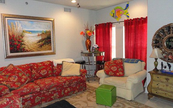 This 3 bedroom is decorated to make fun, happy memories.. so cute and unique with the artistic, whimsical touch. Live at your own Country Club! 4.3 miles from the beach. Low owners' assoc. fee includes: free unlimited golf & cart, common area insurance, state-of-the-art exercise facility, tennis courts, pool, hot tub, sauna, business center, game room, golf shop/grill, tanning beds, and soooo much