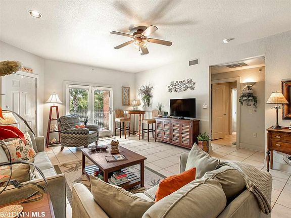 Love is in the air in this fully furnished two-bedroom two bath condo in the newly revamped complex, ONE Club & golf course. This unit features high ceilings, tile in living room and kitchen areas with updated laminate flooring in bedrooms. A fully equipped kitchen with granite countertops and a separate laundry room with brand new washer & dryer. Located on the second floor in building #38 right inside the secondary complex entrance, this unit has easy access to parking and is within steps to all the amenities within ONE Club. A few of these features include a clubhouse, pro-shop and on-site restaurant Bar 45. Residents can also enjoy a fitness gym, two outdoor pools with plenty of seating and nice covered cabanas, outdoor bar, snack shack, jacuzzi, sauna, FREE GOLF FOR OWNERS and 3 pickle ball courts. This unit also includes outdoor furniture for the balcony where you can sit and watch putting on the 6th green. There is also a palm tree view out of the master window overlooking the 7th tee box. Included with this unit is an outdoor storage closet on the balcony for all your sandy beach gear. ONE Club is located just four miles from Gulf Place main public beach and the Hangout. OWA amusement park, the Tanger Outlet mall, Pelican Place shopping center & The Wharf are all within a few minutes' drive of this complex. Come check out this gated community that has on site management and many planned community activities. This unit is perfect for a primary residence, second home, vacation home or rental property. This unit is ready for its new owners. Give us a call today for a private showing. ALL 2 bedroom units will have around the same the same HOA fee.