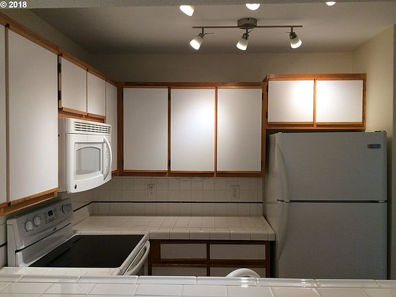 Truly affordable condo living in West Linn. Top floor unit, large living room, wood-burning fireplace, kitchen with pass thru window to dining room. Vinyl windows, interior paint, carpets, vinyl floors in bathrooms all newly installed. @ $4.5M investment remodel project completed 2 years ago-all new siding, decks, railings and gutters. All appliances stay.