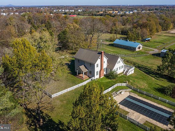 Welcome home to beautiful ShadowDance Farm, located in the heart of Virginia's wine and hunt country! This picturesque 50-acre property, conveniently located just five miles from downtown Leesburg, is a rare find. The 1860s-era built home has been completely renovated with incredible craftsmanship and thoughtfully updated throughout the years. This unique and open-floor plan provides 5,295 square feet of living space from within. The amenities are numerous such as the Chilean Cherry floors throughout the home, high ceilings in the expansive living room with fireplace/wood stove; private library with built-in book shelves; formal dining room; a breakfast area and a large family room both overlooking the land; an office; a bright, sunny art studio/hobby room; a full bath; a strategically located laundry room; and a mud room providing easy outdoor access to the barns -- all of which flow from the centrally located gourmet kitchen where by design family gatherings and joyous entertainment may be enjoyed. The upper floor provides unique possibilities. At the top of the centrally located staircase are two distinctly separate bedroom areas. On the one side, the expansive owners bedroom suite provides a gorgeous, complete view of the land. There is an adjoining sitting room, a large bathroom with a jacuzzi tub, one walk-in closet separated by three steps up to the second walk-in closet, and access to the upstairs laundry room. From the landing, proceed three steps in the other direction to discover two spacious bedrooms each with its own full bath, ideal for a growing family. Moving outside, from the breakfast room the view of the pool/jacuzzi to the south, the impressive equestrian and dog facilities and the breathtaking views spreading out to the east may be fully appreciated. The indoor/outdoor, Mason Company-built dog kennel building, equipped with heat and water and an ample yard surrounding it, formerly housed the owners? field-performance champion Weimaraner dogs. The equestrian complex, located down the hill from the house, is protected from the elements year-round by Hogback Mountain. The 14-stall capacity Morton Builders, center aisle, open design, with 3 fan-powered cupolas boasts a dust-free, airy environment coveted by horse owners. There are 7 finished stalls installed with Mayo Mats; 4 stalls roughed in for future use; a matted wash stall; a spacious insulated, heated tack room with designer cabinetry; and an insulated feed room with lots of cabinet space and access to the outside for easy delivery. There is a separate hay building strategically located near the horse barn. There is a Morton Builders mechanical building, with ample open area with an adjoining secure, insulated workshop. There are 4 Morton built run-ins and 10 fenced paddocks. No matter what the discipline, any horse enthusiast will love the outdoor, fenced riding arena measuring 125' by 250' (big enough for two regulation dressage arenas) and outdoor lights extending for practically year-round training. Obviously the ride-out is enviable with plenty of room to design your own complete cross- country course. The property is in a Loudoun County Scenic Open Space Use Agreement that was created in August 2018. Seller not responsible for rollback taxes.