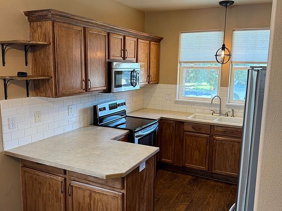 This darling house is located near the Old Mill District and has been completely upgraded. It features 3 bedrooms, 2 baths and has wood laminate floors, designer lighting, gas fireplace, hardware & fixtures. Master Suite has wood wall accent & many more designer touches including 2 closets and the on suite has double sinks. The kitchen has stainless appliances including a microwave and there is a laundry room with shelves for storage. The heat and water are gas and there is AIR CONDITIONING! The yard is landscaped and has sprinklers to make care easy, the rear yard is fenced, there is a patio in the front and a patio in the rear. The garage is attached and is a double car. You will definitely want to see the inside of this cutie! Cat ok with additional security deposit and dog under 20 pounds with excellent rental reference and a $350 additional security deposit plus $35 a month for pet rent. No smoking please. $2450 a month and $3000 security deposit. AVAILABLE IMMEDIATELY! DIRECTIONS: S. Hwy 97, (R) Powers Rd, (L) Blakely, (R) Mt Hope Lane SCHOOLS: Pine Ridge Elementary, Cascade Middle, Summit High