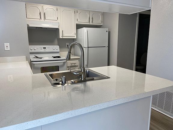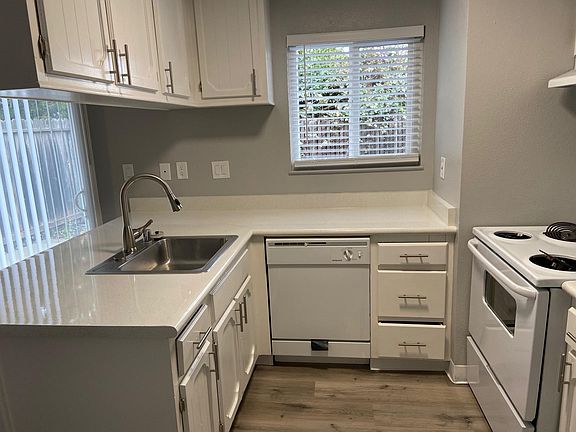Freshly remodeled 3 bedroom, 1.5 bath plus bedroom vanity with sink. Ideally located within walking distance of restaurants, shopping, Chabot Theater, and very commuter friendly being in the center of the Bay Area and near BART and freeways. The first floor features a kitchen, dining room, living room with gas fireplace and half bath as well as private patio and upstairs has three bedrooms with large closets and a full bath. Newly installed carpet upstairs and luxury vinyl plank flooring downstairs. Assigned covered parking is gated and apartments are set well back from the street providing a very quiet and private setting. There is also an onsite laundry room at the property. Owner pays for water, trash and sewer. 6-12 month leases available. Rental includes 1 covered parking space. $30 application fee. No smoking. No pets.