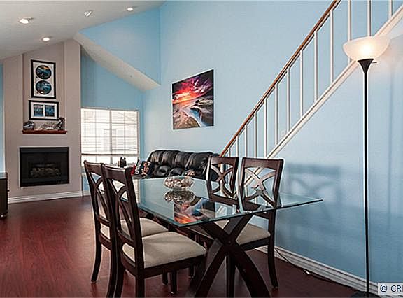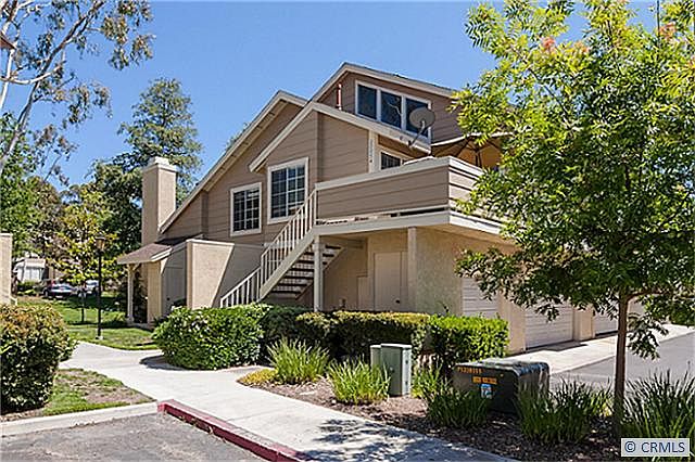 Located in the Greenridge tract, this beautiful condominium is a corner unit w/noone above or below. You have 2 bedrooms, 2 baths + a loft & a 1 car garage below. Upstairs there is a balcony w/ room for a BBQ & table. Go inside & be blown away by gorgeous cherrywood floors & cathedral ceilings. Did we mention the fireplace? Light & bright it seems much bigger than its 1000+ sq. ft. size. The kitchen has been updated w/cabinets & there is a new stove & range hood. The master bedroom is big enough for a king size bed & has a walk-in closet w/plenty of room for storage. The 2nd bedroom makes a great nursery, guest room or study. The loft is perfect for an office & even gives you peek-a-boo mountain views. The recently painted complex has a sparkling pool & is close to shopping, restaurants & 1/2m. from Foothill Ranch & the Toll Rd. Only about 4 miles from 5 fwy.