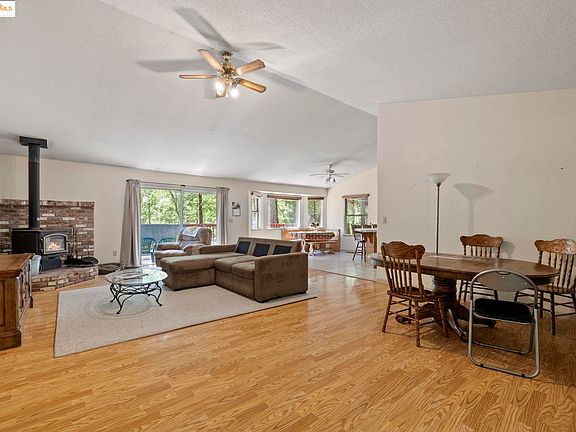 This 1,810-square-foot home sits on over an acre of land, offering both privacy and convenient access to the amenities of the Pine Mountain Lake HOA. Just 30 miles from Yosemite National Park, it provides the perfect blend of peaceful seclusion and nearby adventure. Inside, you’re welcomed by an open-concept design with vaulted ceilings and a cozy wood-burning stove in the living room, creating a warm and inviting atmosphere. The primary bedroom offers its own private bathroom and a spacious walk-in closet for comfort and convenience. Step out onto the back deck to take in views of the surrounding nature and listen to the soothing sound of the creek flowing nearby. A two-car garage adds practicality. Ideally located near the Marina, you can enjoy the café, launch your boat, rent watercraft, swim, and relax on the sandy shore.